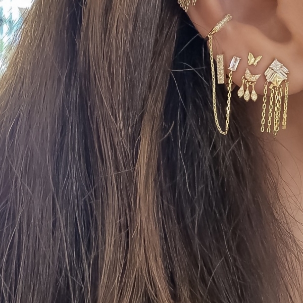 Baget Tektaşlı Ear Cuff / Sarı