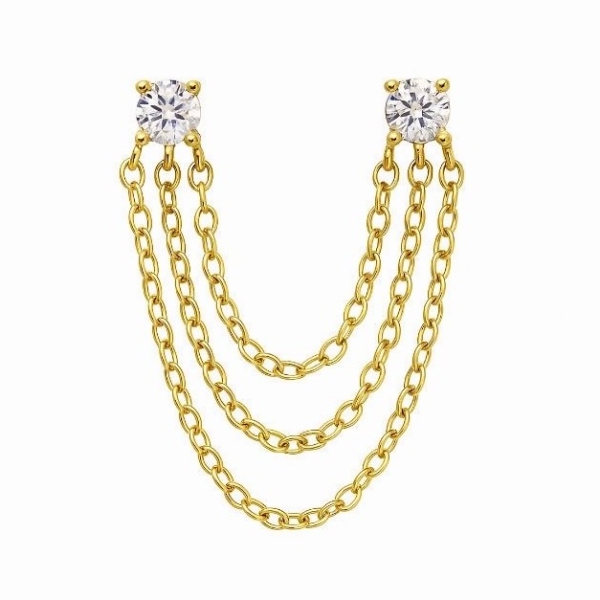Double Tektaşlı Chain Küpe